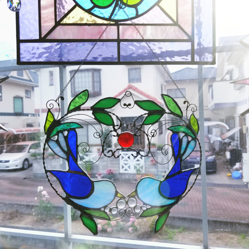 - 美術品・アンティーク・コレクション > 工芸品 > 幸運を呼ぶ!平和のシンボル ステンドグラス ツインバードのサンキャッチャー 幸運を呼ぶ!平和のシンボル ステンドグラス製ツインバードのサン