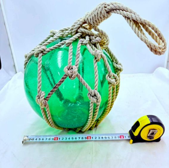 | 商品の特徴 | 昭和レトロ ガラス浮き玉 約30cm グリーン 網付き 漁具 ビン玉。ガラスの浮き玉 祈玉8号 | 浅原硝子製造所 【 北海道 スロウなお買い物。あの漁具、この漁具、どうする? どう使う!? | 海と日本PROJECT in。漁で使用されていた、びん玉と置台のセットです。ガラス特有の透明感があり、薄グリーン色がとてもきれいです。インテリアや店舗ディスプレイ、コレクションとしてもおすすめです。サイズびん玉直径:約30cm 台 高さ 約18cm 幅 約35cm※素人採寸のため多少の誤差はご了承ください。色薄グリーン(光加減で多少色が異なります)使用や経年による擦れ、小キズ、汚れ等あり大きな割れや欠けはありません(※あくまで主観です)【発送】破損防止のため、発泡スチロール等で丁寧に梱包して発送します。中古品・古物にご理解のある方のみご購入をお願いいたします。。ガラスの浮き玉(びん玉)ベージュ【ロープ インテリア お洒落 雑貨。773.夢陶 青釉額入六角豆鉢 盆栽鉢 植木鉢 3*2.8*2.1cm。江戸中期 古伊万里 極上 染付青磁 微塵唐草ずくし図 裏は蛸唐草図 大皿。益子焼 千田義昭作 長皿2点 練り込み陶芸 陶芸品 民藝 作家物。ジョルジュ・サンドのいちご皿 FRAISE クレイユモントロー I。中国美術 景徳鎮 花瓶 送料込み | ||
