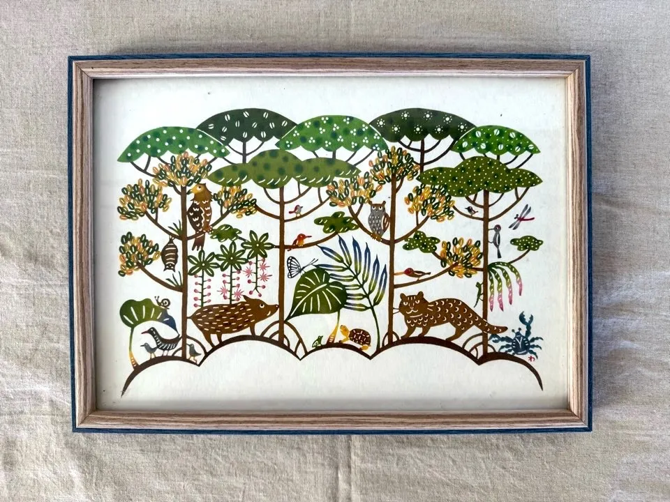 - 美術品・アンティーク・コレクション > 版画 > 琉球紅型【リュウキュウビンガタ】 布地染め 木枠額装仕立て 前面ガラス仕様 琉球紅型【リュウキュウビンガタ】 布地染め 木枠額装仕立て 前面