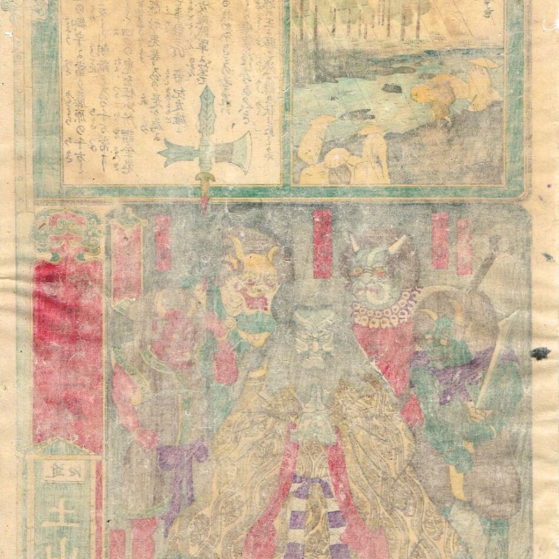 | 商品の特徴 | 浮世絵、風船昇遥圖3枚綴りの右側1枚売りです 歌川芳。浮世絵、風船昇遥圖3枚綴りの右側1枚売りです 歌川芳。浮世絵、風船昇遥圖3枚綴りの右側1枚売りです 歌川芳。歌川芳虎の風船昇遥圖になります三枚綴りの右側1枚売りになります作品年月日は明治5年(1872)浮世絵寸法は横25㎝位×縦36、5㎝位、摺良、色良、保存並み下、スレ、シワ、汚れ、シミ、中折れ、中折れ補修、虫穴補修二ヵ所(写真13枚目14枚目黒色参考)補修多くジャンク品扱い資料的価値あり印刷、復刻ではありまん。歌川芳虎の浮世絵(オリジナル)本物です。東京日本橋繁栄之図 3枚続揃 【明治3年 歌川芳虎 浮世絵】(歌川芳虎 | ||