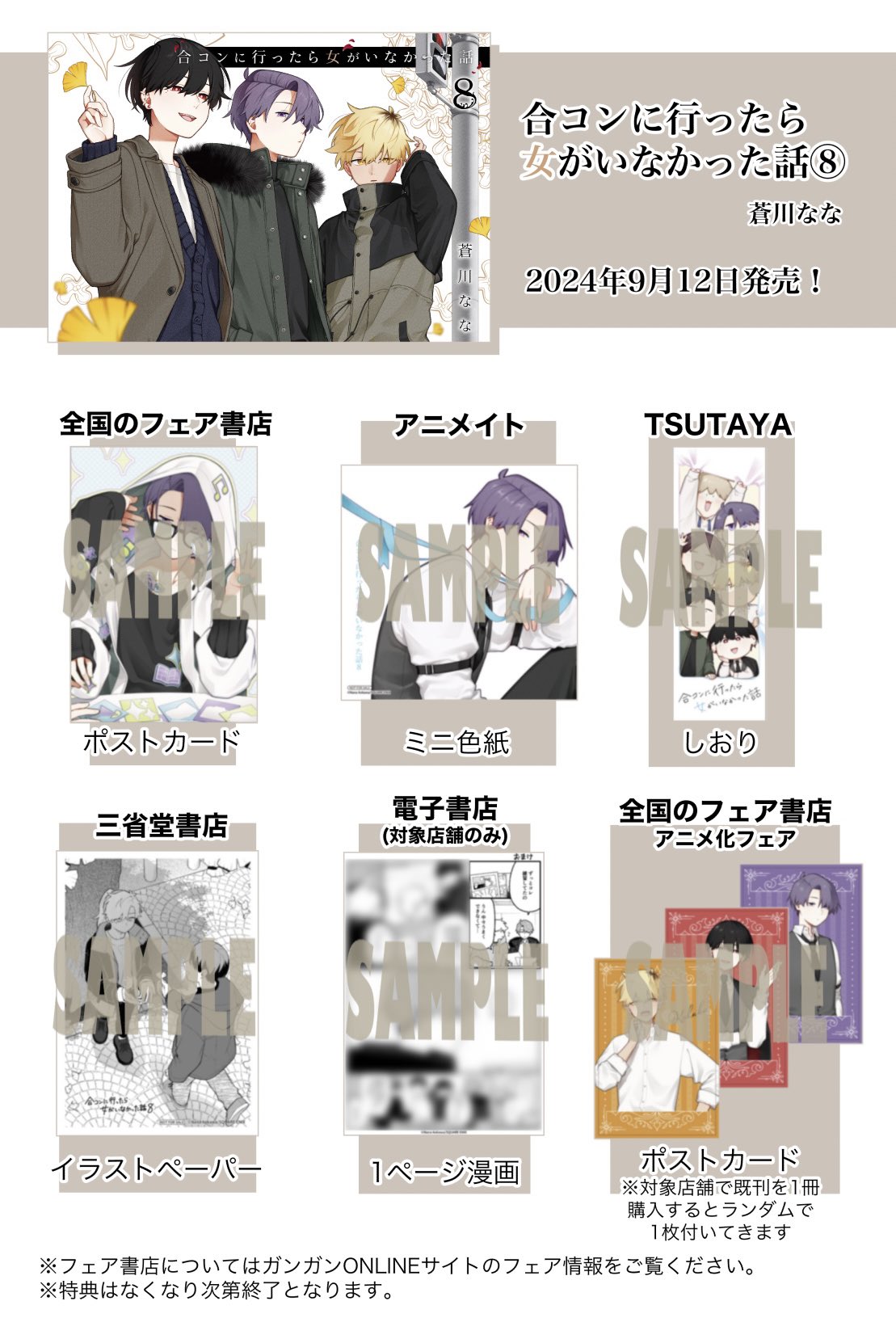 | 商品の特徴 | 合コンに行ったら女がいなかった話 特典 イラストカード ポストカード。GCO『合コンに行ったら女がいなかった話』アニメ化記念フェア開催。合コンに行ったら女がいなかった話 特典 ポストカード - メルカリ。#合コンアニメリスト猫孤合コンに行ったら女がいなかった話 蒼川なな蘇芳 藤 琥珀 萩 常磐 浅葱ポップアップショップ 購入特典カード全6種類 各1枚コンプリートセット 全種類セット撮影のために袋から出しておりますがすぐに別の袋に戻しております。GCO『合コンに行ったら女がいなかった話』8巻 9/12(木)発売記念。新品未使用【バラ売り不可】【お値下げ不可】コメントなし、即購入歓迎!! | ||