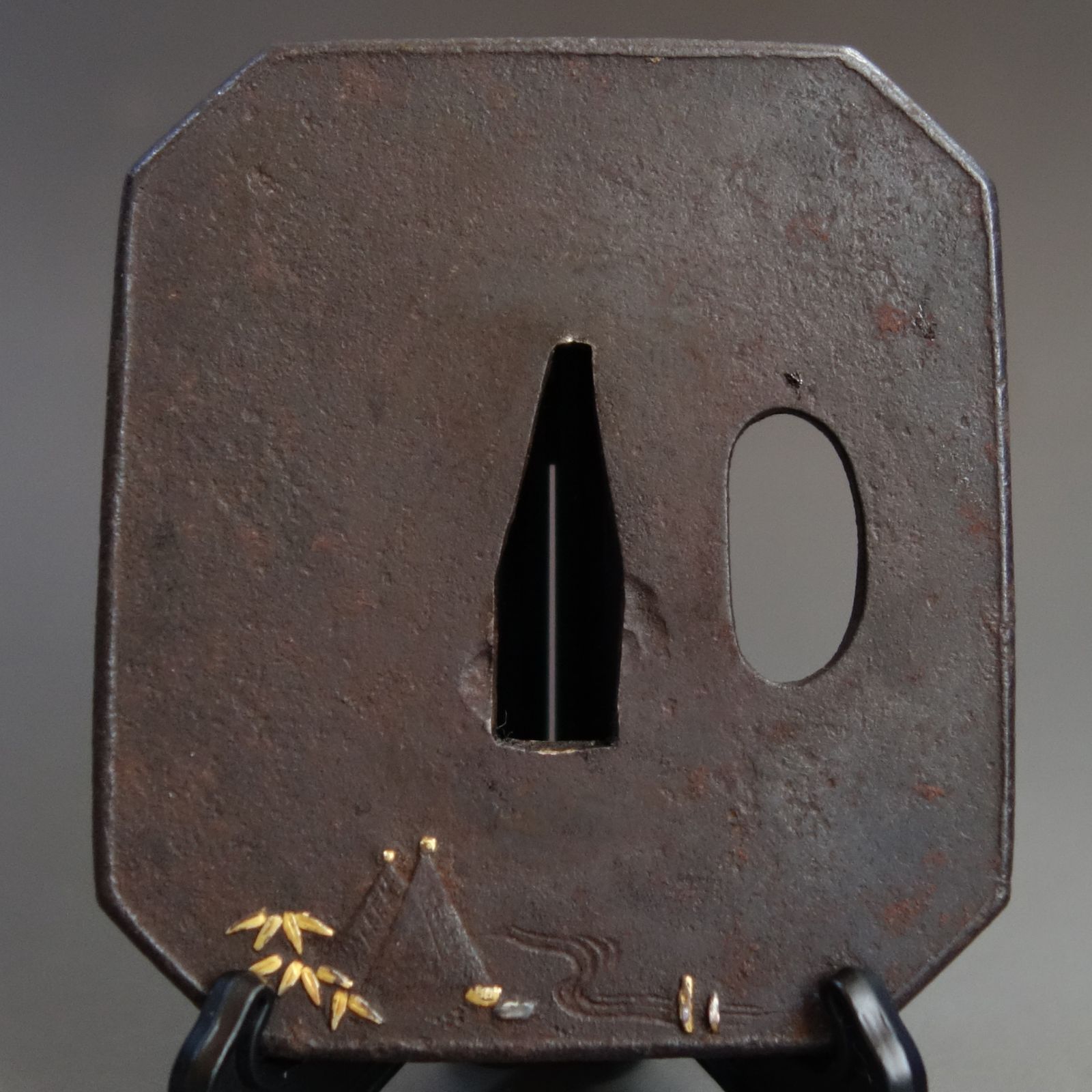 - 美術品・アンティーク・コレクション > 武具 > 【 太公望図鍔 】 鍔 鐔 鉄地 象嵌 刀装具 武具 骨董 アンティーク 鍔 【 鉄地 象嵌 太公望風景図鍔 】 日本刀 刀装具 鐔 骨董 古美術