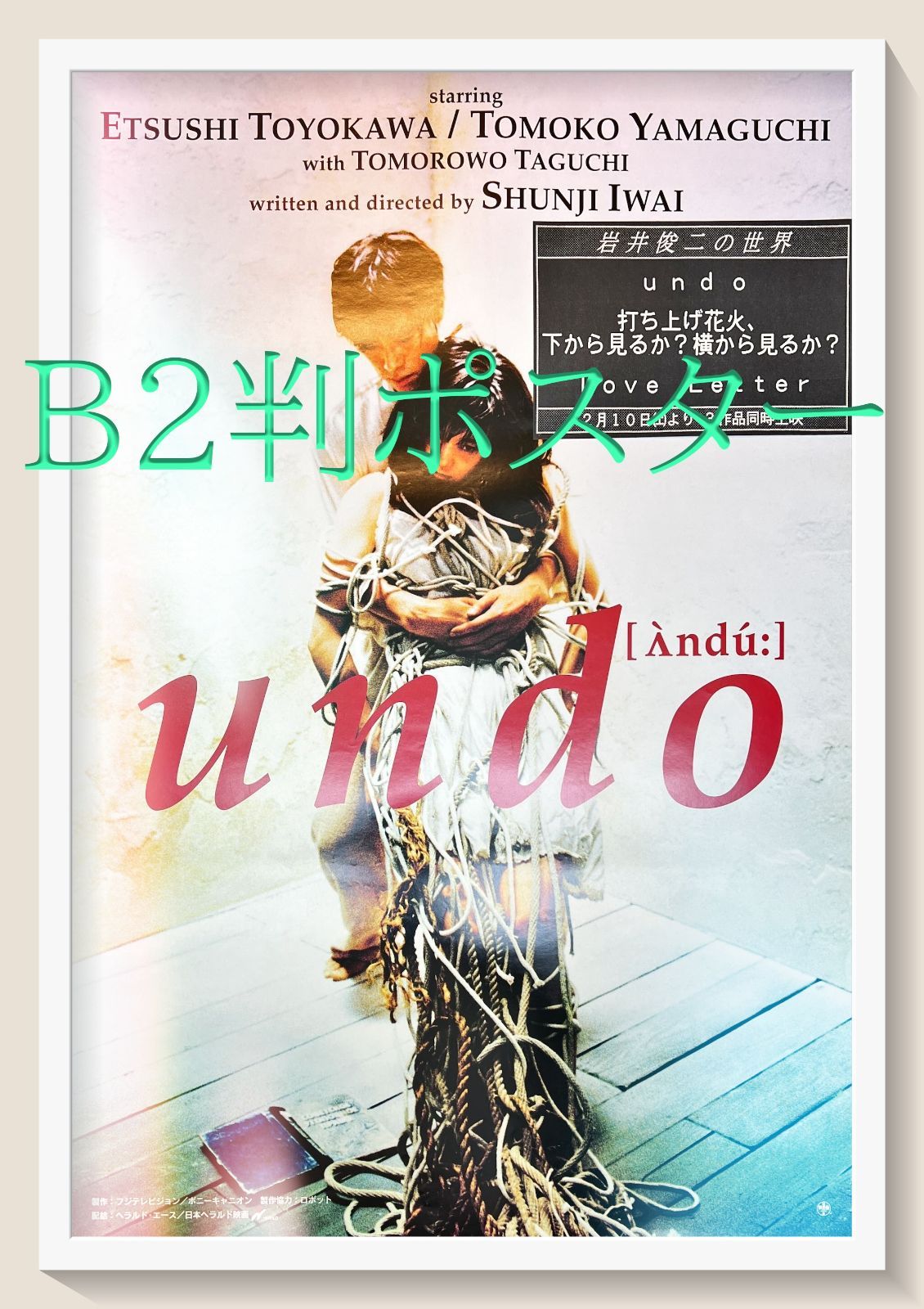 | 商品の特徴 | undo [アンドゥ] 写真展 ポスター。undo [アンドゥ] 写真展 ポスター。VINTAGE POSTER SCRAP展覧会 Part.2 @meguro_museum_of_art_tokyo。岩井俊二監督による「undo」写真展ポスター- イベント名: undo [アンドゥ] 写真展- 開催期間: 1995年12月22日(金)〜1996年1月4日(木)- 開催場所: 渋谷パルココンタクト 5F スペース5- 監督: 岩井俊二- 主演: 豊川悦司, 山口智子- 撮影: 野村浩司ご覧いただきありがとうございます。。A RETROSPECTIVE The Museum of Modern Art,New York 1989/アンディ | ||