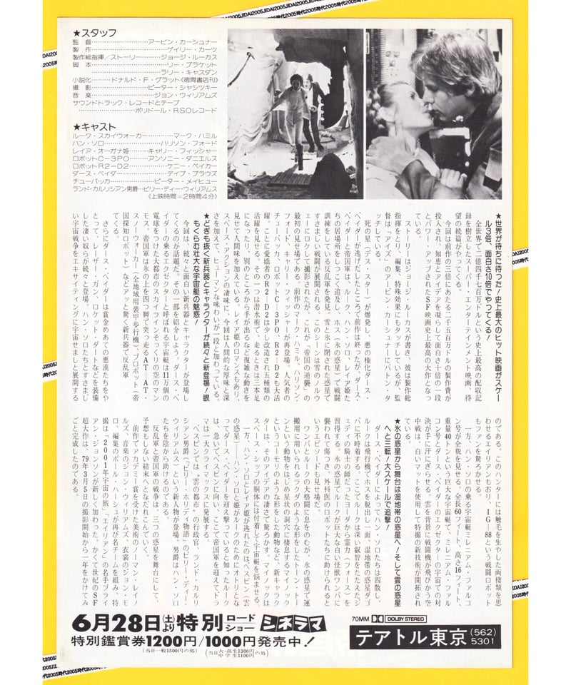 | メーカー | 『スター・ウォーズ 帝国の逆襲』映画チラシセット |