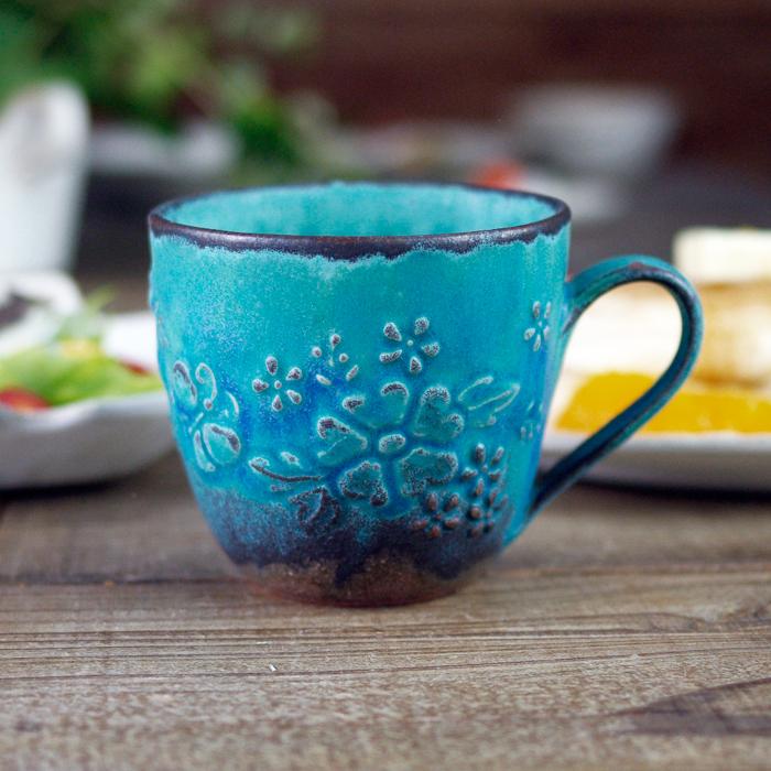 | メーカー | 青緑色の花模様の陶器カップ ガーデン |