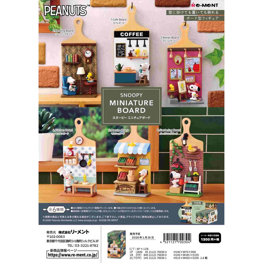 | 商品の特徴 | リーメント (予約)1月26日発売 スヌーピー SNOOPY MINIATURE BOARD 全6。リーメント SNOOPY & FRIENDS Terrarium Happiness with Snoopy 全6。SNOOPY COFFEE ROASTERY & CAFE:商品案内 | 株式会社リーメント。リーメント (予約)2月2日発売 スヌーピー SNOOPY Sweet Little Home 全。さスヌーピーリーメント4種セットです | ||