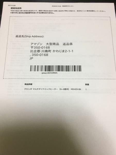 お申込番号:UYOTA346527417 /メーカー:ユウジ返品対応 Amazonの返品について質問です❗️大至急‼️ /型番:2741725290 /JANコード:212726628 /アズワン/ナビス品番: