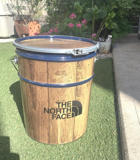 【2セット】 オープンペール缶 20L キャンプ 薪入れ テーブルチェア 焚火缶 オープンペール缶 20L リメイクウッド仕上げ 薪入れ テーブルチェア