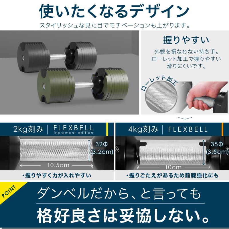 - トレーニング・エクササイズ > ウエイトトレーニング > フレックスベル32kg 2kg刻み 片方のみ レビュー投稿で2年保証) ダンベル フレックスベル 2kg刻み 32kg 1個