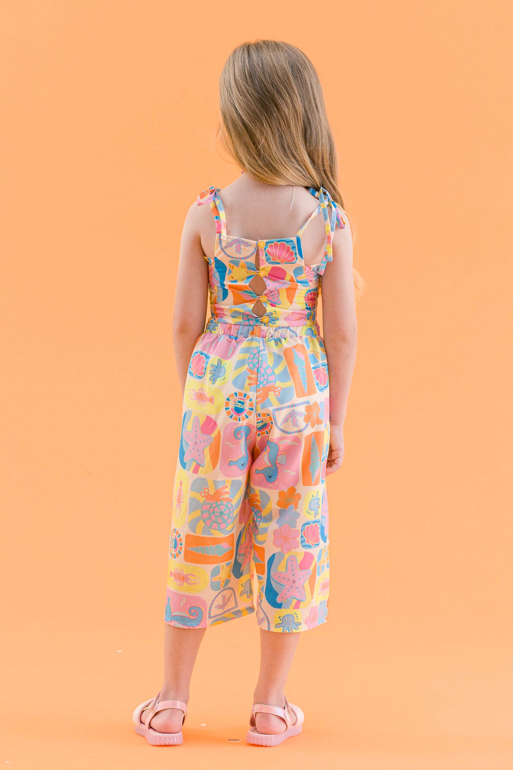 【SALE】LESQUE MHAK COLORPATTERN7.5”【KIDS】 MACACÃO INFANTIL FEMININO ESTAMPADO COM LASTEX | MÁLAGAH
