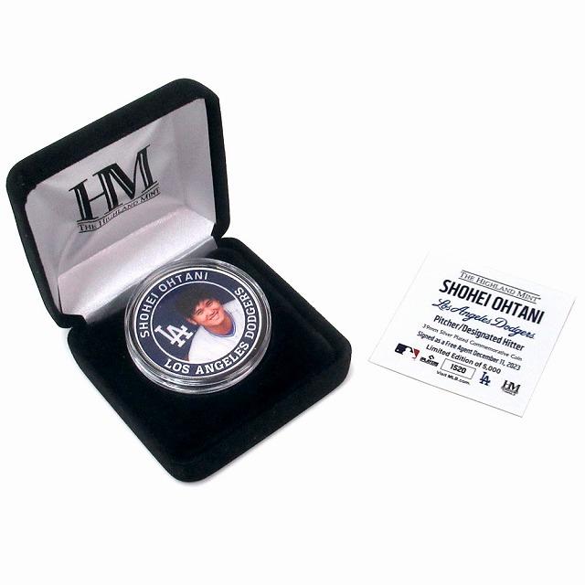 | 商品の特徴 | ドジャース 大谷翔平選手 移籍記念シルバーコイン 世界限定5000個 大谷。大谷翔平 ドジヤース移籍記念(メダル)、5000個限定品 大谷翔平。並行輸入品】記念コイン 大谷翔平 ロサンゼルス ドジャース 世界限定。大谷翔平選手のドジャースへの移籍を記念して作られたメモリアルグッズです。(メダル)表面は、ドジャースの入団会見でユニフォームを着た大谷翔平選手の写真だと思われます。(メダル)側面にはシリアルナンバーが刻印されています。証明書カードには、フリーエージェントとして署名された「December 11,2023」と、シリアルナンバーが印刷されています。ドジャース 大谷翔平選手 移籍記念シルバーコイン 世界限定5000個 大谷。10年7億ドルというプロスポーツ界史上最高額の契約でした。2024年ワールドシリーズ ロサンゼルス・ドジャース 記念グッズセット。千賀滉大 メッツ ボブルヘッド フィギュア 2025。(メダル)裏面はドジャースロゴがデザインされています。ドジャース 大谷翔平 『MVP記念号』 3年連続受賞で歴代単独2位となる4度目‼︎。「スペシャルボックス入り大谷翔平シグネチャーキャップ」。MLB公認のホログラムシールが貼られた正規品で、数量5000個の限定品です。海野隆司 実使用バッティンググローブ ソフトバンクホークス 直筆サイン。Supreme Rawlings® REV1X® Aerial Baseball。MADE IN THE USA、 The Highland Mint 社製、(メダル)直径約3.9cm、シルバーメッキ、ジュエリーケース(ブラック)、 シリアル番号入り(プリントと刻印による表記) リーグ名/大会名...メジャーリーグ/MLBチーム(球団)名...ロサンゼルス・ドジャースタイプ...選手 | ||