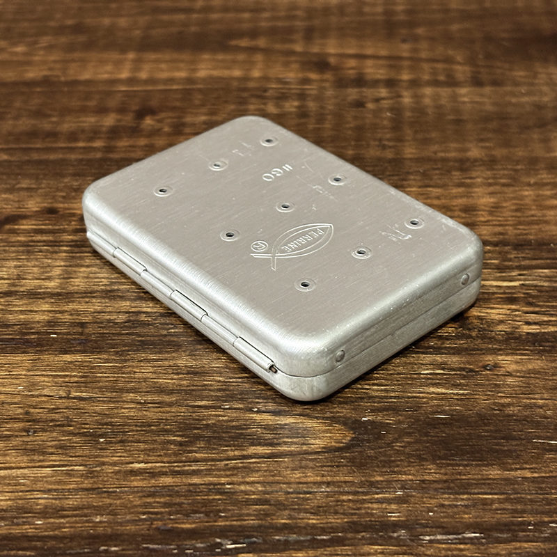中古美品!【PERRINE】 パーリン アルミフライボックス #96 フライ付 Perrine #60 Small Size Clip Hold Type Silver Aluminum Fly Box Mint