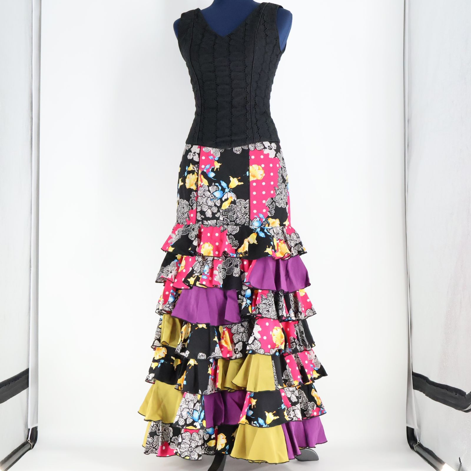 | 商品の特徴 | フラメンコ衣装】ブラック SONIA JOHNES ソニアジョーンズ 上下セット。フラメンコ衣装ソニアジョーンズ上下セットピキージョ付き サイズ3。Sonia Johnes | フラメンコ衣装のソニア・ジョーンズ 公式ブランドサイト。ソニアジョーンズの衣装です。数回の着用ですが、ファルダに若干のシミがあります。ご理解の上、ご購入下さい。)【カラフルなデザイン】このフラメンコドレスは、白地にカラフルなドット模様が施されており、視覚的に非常に魅力的です。特価品!フラメンコシューズ•Coral•プロ•36(23.1-23.6cm)。これにより、ダンスパフォーマンスがより一層引き立ちます。- 色: 白、オレンジ、青、黄色、赤- デザイン: ドット模様、フリル付き- スタイル: フラメンコドレス※喫煙者、ペットはおりません。気持ちお値引きいたします。美品 フラメンコ衣装】グリーン SONIA JOHNES 上下セット 緑。ファルダはマーメイドラインなので、ヒップの形がキレイにでます。【美品 フラメンコ衣装】ラベンダー PACO OLEA ブラウス ファルダ。【フラメンコ衣装】値下げ♪MOLINA フラメンコドレス 4段フリル七分袖。(写真11、12枚目)※クリーニング済です。フラメンコ ドレス 赤と黒 花柄。フラメンコ衣装 豪華 水玉 CANELA PURA ロングドレス スペイン。サイズ 3◯トップス 身丈 52cm 胸囲 43cm◯ファルダ 胴囲 30.5cm ヒップ 45cm 丈 96cm(素人採寸のため多少の誤差はご了承下さい。[新品]シルク製マントン・フラメンコ・トルコブルーx同色刺繍。[新品] 本場のアバニコ!!・両面(赤)張り・スペイン製の手作り商品です。。オレンジ、青、黄色、赤の色合いが、ダンスの動きに合わせて華やかに映えます。【フリルのディテール】裾にはフリルが施されており、踊る際の動きに合わせて美しい流れを生み出します。[新品] フラメンコ用アバニコ!!・両面(赤)張り・スペイン製の手作り商品です。。フラメンコ 薔薇ブラックロングドレス。【スタイルと用途】フラメンコダンスに最適なスタイルで、特別なイベントやパフォーマンスにぴったりです。値下げしましたモリーナ 赤フラメンコドレス フリル付き。[新品] フラメンコ衣裳・シルク100%マントン仕様・Made in Spain。☆複数購入(同梱希望)される方は、コメント欄よりメッセージをお願いいたします。ソニアジョーンズツーピース新品美品クリスマスセール。【送料込】フラメンコ衣装 スペイン輸入オリジナルデザイン。 | ||