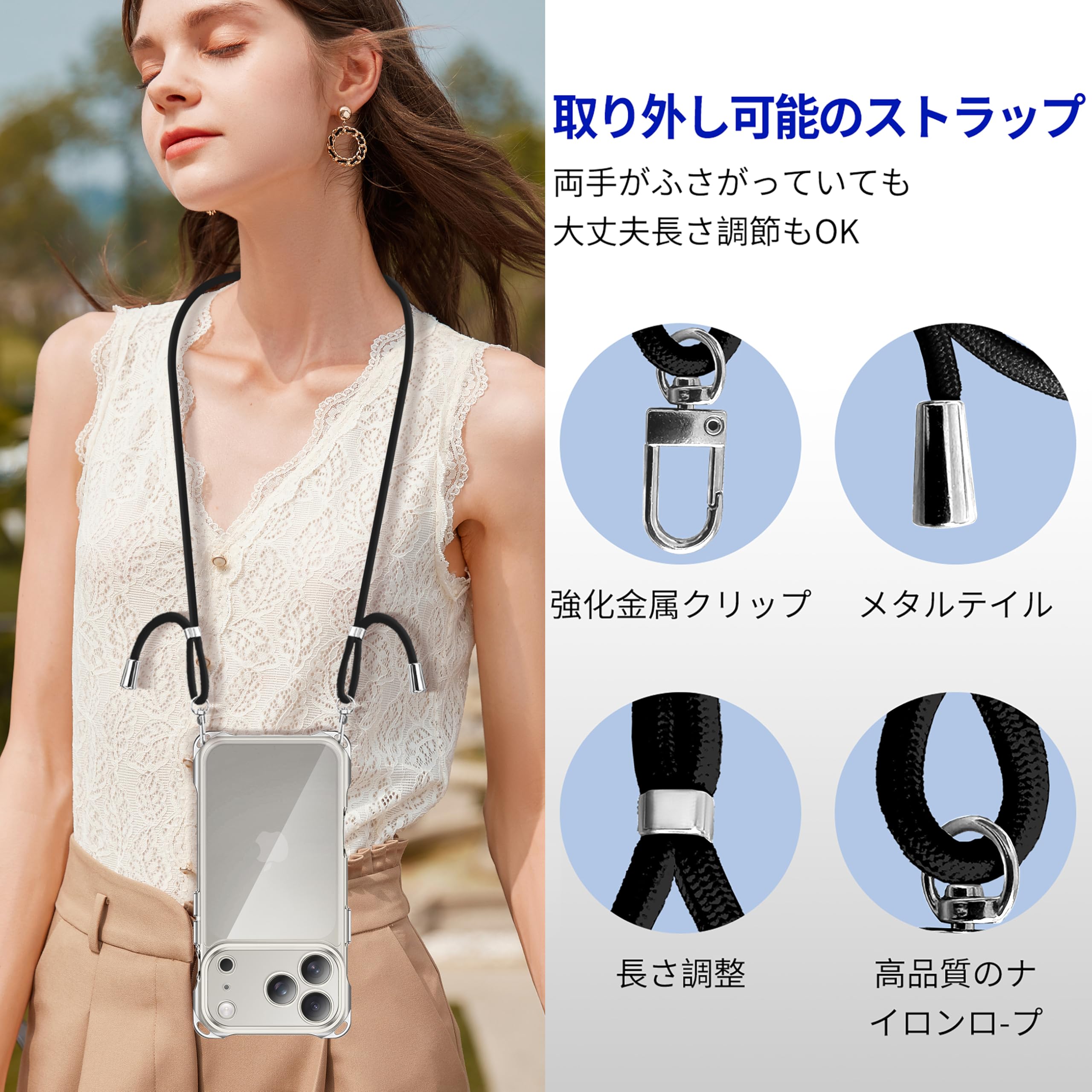 - スマートフォン・携帯電話 > iPhoneアクセサリー > スマホケース iPhone17promax用 Amazon.co.jp: iPhone 17 Pro Max 用 ケース クリア ショルダー 調節