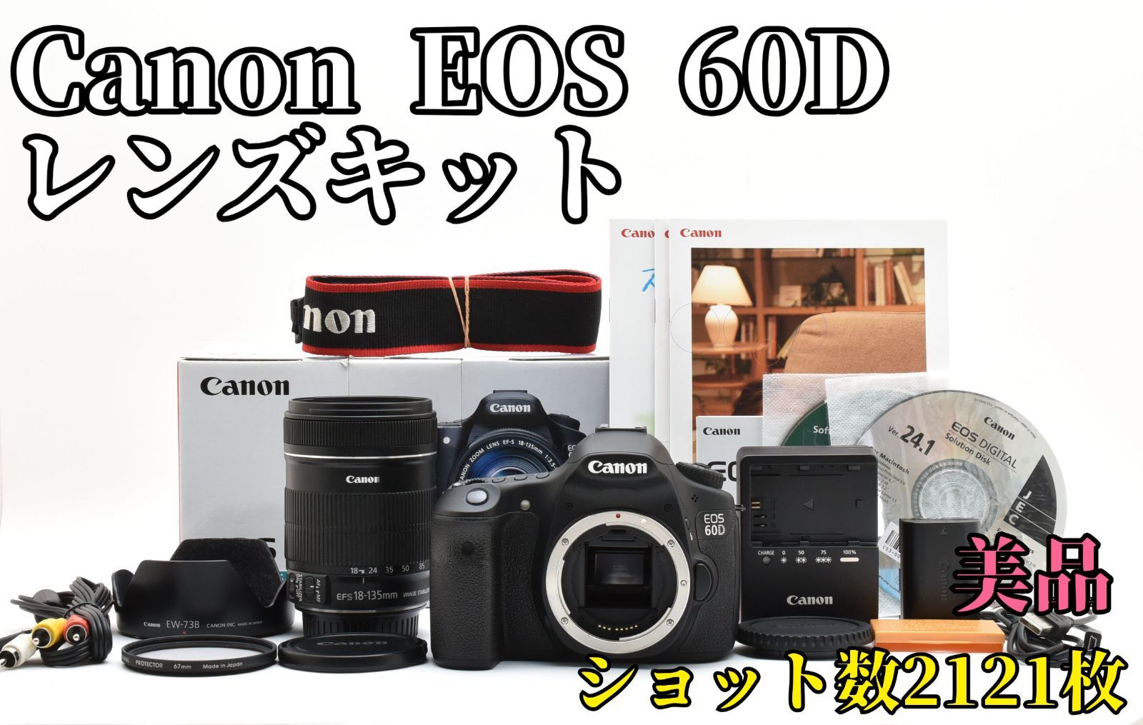 | 商品の特徴 | ❤初心者にオススメ❤キヤノン Canon EOS 60D レンズセット❤ ❤初心者。キャノン EOS60Dとレンズ4本のセットです おまけ色々あります。✨高速連写✨スマホ転送可能✨Canon EOS 60D レンズセット ✨スマホ。canon eos 60D レンズセット。ご覧いただきありがとうございます♪❤初心者にオススメ❤キヤノン Canon EOS 60D レンズセット❤【オススメポイント】・映像エンジンDIGIC4搭載のハイアマチュアモデル♪・液晶が回転して自撮りが撮れる♪・初心者にもオススメの大人気機種♪・嬉しい全国送料無料♪・安心の初期不良保証♪【商品説明】1,800万画素のCMOSセンサー(APS-C)を搭載し、写真撮影だけではなくフルHD画質の動画撮影にも対応しています!ハイアマチュア向けの機種ですが簡単撮影モードも搭載しているのでカメラ初心者の方にも簡単にお使いいただけます!お手軽簡単操作で高画質の Full HD(フルハイビジョン)動画も撮影可能!新しい機種ではないですが、キヤノンの2桁機はKissシリーズと比べると堅牢性が高く、とても丈夫です♪長く使って頂ける逸品ですよ( ¨̮ )古いKissシリーズと迷っている方にオススメします♪【コンディション】外観:多少の使用感がありますが、全体的には綺麗です【ランクAB】レンズ内光学:多少のチリのみで、撮影に影響のある要素はありません!【ランクA】動作:各部動作絶好調でございます( ¨̮ )【付属品】・ボディ・標準レンズ EF 28-80mm USM フルサイズ対応・レンズキャップフロント・レンズキャップリア・ボディキャップ・バッテリー・充電器・ストラップ最後までご覧くださいまして誠にありがとうございました♪ | ||