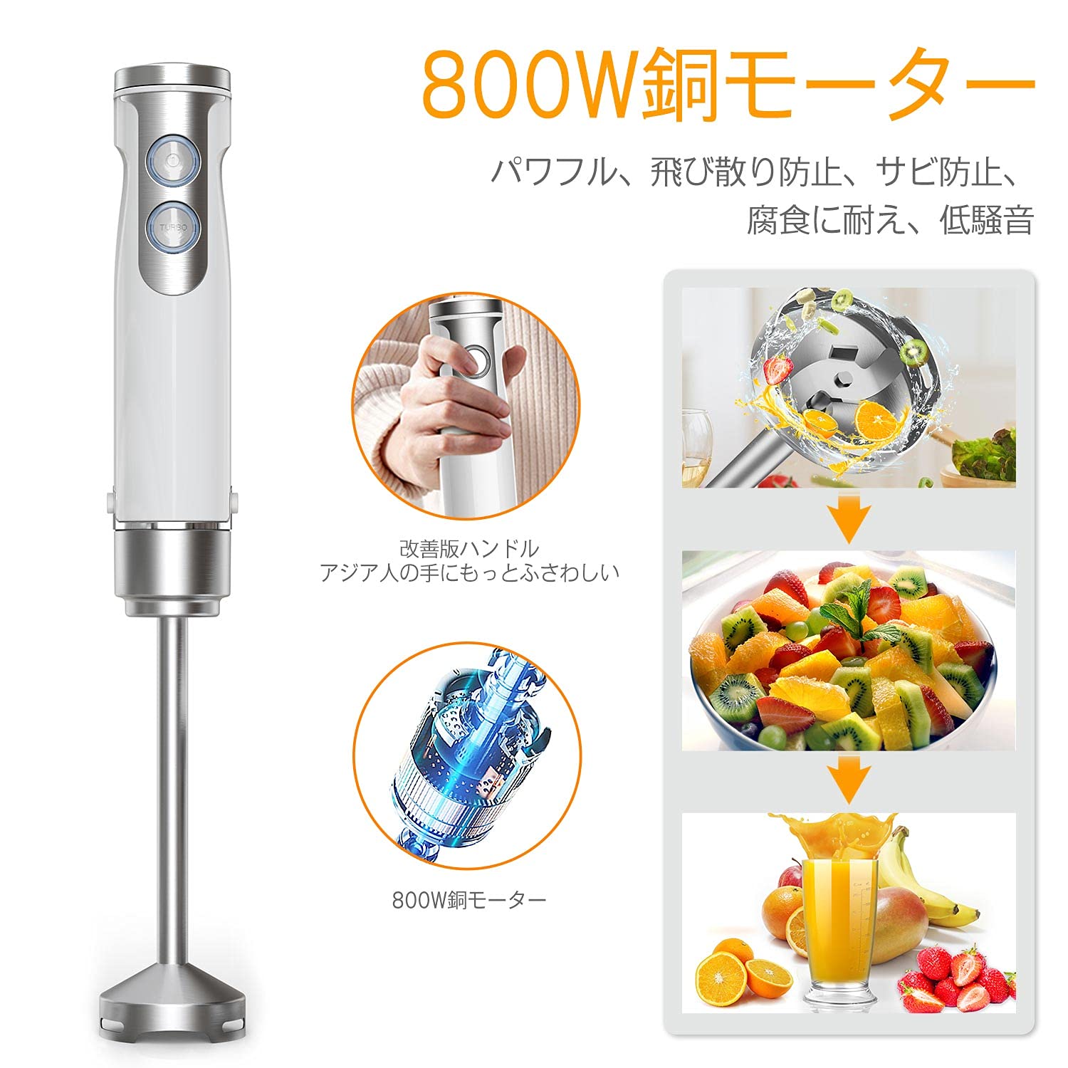 | 商品の特徴 | Amazon | Honyat ハンドブレンダー ハンディミキサー フード。楽天市場】フードプロセッサー コードレス ハンドブレンダー 肉挽き。楽天市場】フードプロセッサー コードレス ハンドブレンダー 肉挽き。【1台5役】セット内容:ブレンダー、ホイッパー、チョッパー、計量カップ。食品接触安全の304ステンレス鋼ブレードを採用しております。【飛び散り防止設計】1-6段階できめ細かく回転数が変えられ、食材や仕上がりに合わせて効率よく使えるので、扱いやすさ抜群です。ブレンダーの回転刃カバーには飛び散りを防止する独自の設計を採用、キッチンや衣服を汚す心配が少ないので、いつでもどこでも使えます。急いで調理したいときや大量に作りたいときでも頼りになります。調理器具など洗い物も増えず、手間を減らします。ブレードは取り外し工具で安全に簡単に取り外せました。2、刃に対してチタン保護層を追加し、刃をより酸化に耐え、サビ防止、腐食に耐え、より健康的に使用できます。ダイヤル1での使用時時のデジベル数は6dB。静かに使えるから、赤ちゃんが騒音に驚いたり、お昼寝から起きてしまうなんてことも起きにくいです。ジュースやスムージー、スープ、離乳食などさまざまな料理に大活躍です。楽天市場】【最強モデル・無段階変速】ハンドブレンダー ブレンダー。2021最新版 業界初スマートスピードテクノロジー搭載、つぶす・混ぜる・刻む・スライス・千切り・こねる・おろすがこれ一台で調理できちゃう優れもの。Aladdin グラファイトミニグリラー CAG-MG7A(G)。②新品★abien magic grill JF-MG02-B。シャープなS字型ブレードはしっかり食材を巻き込むから均一に仕上げることができます。バイタミックス Vitamix S30。Y♢494 象印 電動ポット CD-SE50 5.0L。食材や料理に合わせて、やわらかい果物には低速モード、肉のきざみや果物等の固い果物のつぶしは高速モードです。【新品,未開封】フードドライヤー 食品乾燥機 ドライフルーツメーカー。【未使用】イワタニ クラシックミルサー IFM-800DGM。【パワフル&手入れ簡単】ダイヤル6では1分間で最高11000回ものスピードでパワフルに回転。【新品未使用】COSORI 3.8L ノンフライヤー コソリ。新品!Panasonic SD-BH1000-Y ホームベーカリーイエロー。直接お鍋やボウルで調理ができるので、よりスムーズな調理が可能。【新品未使用】シロカ siroca おうちベーカリー SB-1D151 ブラウン。「Panasonic パナソニック SD-BMT1001ホームベーカリー 」。フレンダーは刃の部分がきれいに洗えないのがネックでしたが、これはシャフトからブレードなどが外せるので、絡みついた食材の繊維やしつこい汚れもしっかり洗浄できて。キッチン家電 THERMOS Shuttle Chef KPY-4500 4.5L。タイガー魔法瓶(TIGER) 電気ポット PIM-G220K 蒸気レス。【2021改良版】1、刃を曲げた形に設計、従来のブレードと比べて粉砕効果が高く、粉砕時間が短くなります。COSORI PRO LE 4.7L ノンフライヤー CAF-L501-KJP。【未使用】シロカ 全自動ホームベーカリー SB-111 2024年製。3、モーターをよりよく保護し、インテリジェント温度制御システムが追加されています。リンナイ コンロ。BRUNO ホットプレート/鍋/たこ焼きブラック。音に気になる時間帯でも気にせずに使えます。美品 象印 ホットプレート やきやき EA-GW30 型2021年製。【未使用品】BALMUDA バルミューダ 電気ケトル ホワイト 396。【握りやすく軽量&PSE認証済み】自のグリップはすっと手になじむだけでなく、しっかり持てて滑りにくいので、ハイパワーでの使用時でも手軽に扱えます。フードドライヤー食品乾燥器 ネスコ nesco Dehydrator。COSORI ノンフライヤー。パッケージ:本体、ブレンダー、泡立て器、チョッパー、専用計量カップ、取扱説明書、保証カード、PSE認証済み | ||