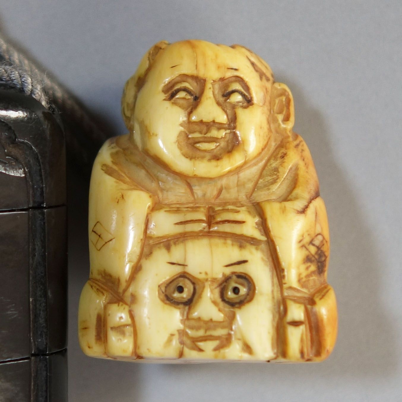 | 商品の特徴 | 印籠 根付 【 堆黒 彫漆 中国山水図 印籠 / 牙 彫刻 肩車の奴髷人物。220713-boar-2.jpg。時代物 蒔絵印籠 根付 時代物 蒔絵印籠 根付 印籠・根付(いんろう・ね。日本の和装文化を象徴する蒔絵印籠に、人物を立体的に彫り上げた根付が組み合わされ、長年の時を経たことで、金蒔絵と漆が自然に馴染み、現代品にはない奥行きと枯れ味を生み出しています。■ 状態・経年によるスレ、漆の剥がれ、金蒔絵の薄れあり・紐に使用感あり※時代物としては概ね良好なコンディションです※状態は写真を最優先でご判断くださいこの絵柄の中心テーマ「理想郷・安寧・悠々自適な人生」+「旅・往来・商い・出世運」この2つが重なっています。■ モチーフ別の意味解説① 楼閣・家屋(建物)= 安定・基盤・家系の繁栄高床・楼閣風の建物屋根が強調されているこれは 「腰を据えた生活」「身分・家業の安定」を象徴します。印籠は“身分ある町人・武士”が持つ物なので、自分の立場を誇示しつつ、安定を願う図柄です。② 水辺・波文= 人生の流れ・時の移ろい緩やかな波荒れていない水面 「順調な人生」「波乱のない日々」を意味します。荒波ではなく、制御された波なのが重要です。③ 舟(小舟)= 人生・商い・旅・移動これは非常に重要なモチーフです。舟は 「自分自身」 「人生を運ぶ器」特に江戸期では商人、藩の御用、行商・旅と強く結びつきます。「良い流れに乗って、無事に目的地へ着く」という縁起。④ 人物(舟に乗る人)= 主体的に人生を操る者。舟があっても、人がいなければ意味がありません。これは 「流される人生ではなく、舵を取る人生」を示しています。⑤ 全体構図(山・木・建物・水・舟)これは中国由来の思想ですが、日本ではこう解釈されます。「理想的な暮らしの縮図(桃源郷的世界)」山 → 守られた世界水 → 流れ建物 → 定住舟 → 往来理想郷に自由に出入りできる人の世界■ なぜ印籠にこの絵柄か?印籠は財布、身分証、お守りの役割を持ちます。この図柄は✔ 成功している✔ 安定している✔ なおかつ自由という**「理想の人物像」**を象徴します。■ 骨董的な位置づけこのタイプの蒔絵は江戸後期〜明治初期に多い町人・裕福層向け「最高級」ではないが意味が分かる人が選ぶ“通好み”だから今でも国内外コレクターに刺さるんです。■ ご注意本品は新品ではなく時代物・古美術品です。その特性をご理解いただける方のみご購入をお願いいたします。。印籠 根付 【 堆黒 彫漆 中国山水図 印籠 / 古骨 彫刻 透彫 寿老人。未使用 中里重利 絵唐津香合 共箱あり 百貨店購入 中里太郎右衛門。美濃の古陶。輪島塗御膳 漆器 3セット。新品★竹内靖之【師:山本陶秀】★備前面取り急須(宝瓶)B。お値下げしました、九谷焼 おしどり 折り鶴 盃。珉平焼 2点セット。木製尺4切立長手盆 黒天朱。骨董品 大正ロマン 蓋付き四段重 陶器製 金彩松竹梅と旭日鶴飛来。幕末〜明治時代 古伊万里 色絵獅子牡丹文様向付 五客。輪島塗 朱漆塗 内総沈金 菊花紋詰 吸物椀 懐石椀 茶道具 金 蒔絵 羽反 2客。山田平安堂 汁椀 未使用品 5個。金縁黒内朱塗りのハ寸五段重箱と蓋二枚/金縁黒内朱塗りの重臺(じゅうだい)一個。デッドストック!上質内朱黒漆に極上菊沈金の映える台付輪島塗二段重(検重箱お重。漆器セット 花柄 5つの小鉢と大鉢 新品未使用。青白い葉模様の陶器花瓶。デッドストック!内朱金縁黒漆に極上宝尽蒔絵の映える三段重(検輪島塗重箱お重。茶道具 輪島塗 屠蘇器 松竹梅蒔絵 極上 懐石道具 木製 正月 木箱 | ||