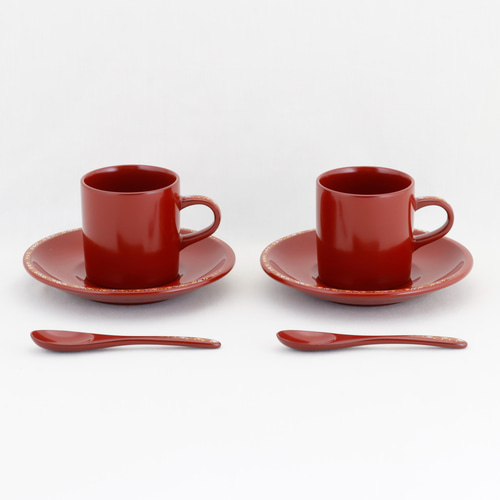 - 美術品・アンティーク・コレクション > 工芸品 > 沖縄工芸品 琉球漆器 コーヒーカップ &ソーサー ペアセット スプーン付き 美品 伝統工芸 輪島塗 ペア珈琲カップ 縁小華沈金 スプーン付【1101